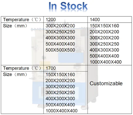 Chamber size(mm) | 160X150X150 | 200X200X200 | 300X200X200 | 300X250X250 | 400X300X300 | 500X400X400 | |