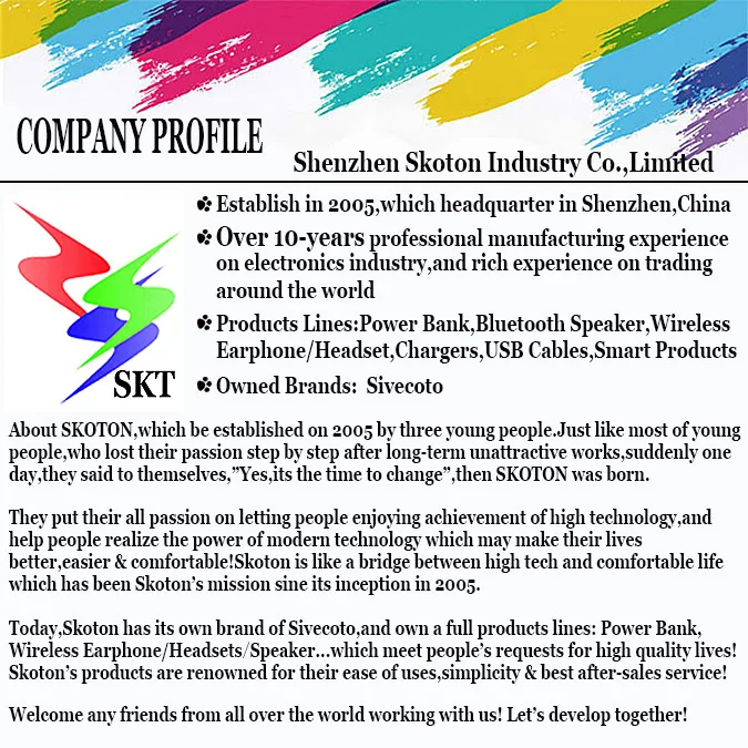 1. Package: Each item will be packed on color box,and attach a standard Micro-USB charging cable.