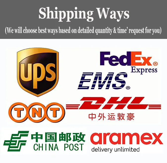 4. Shipment terms: For prompt shipping ways,you may choose DHL/UPS/FedEx/TNT/EMS which are door to door service;for usual shipping ways,we suggest you to ship by sea.