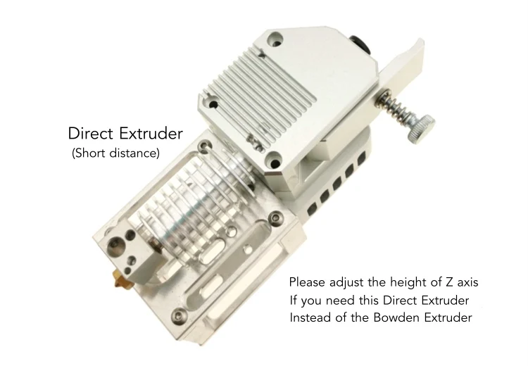 Our default specification is Bowden/long distance extruder for Option 2. If you need direct/short distance extruder as shown below, please contact with us. Thank you!