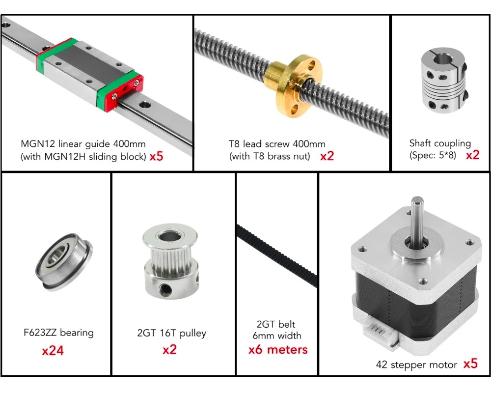 Feature: This is the most popular set for our BLV mgn cube. Because this option includes all of the parts you need for X axis, Y axis and Z axis. You don't need to spend the extra effort to find them. You can get all of them from us directly with best price and high quality (ALL CNC Machining Products).