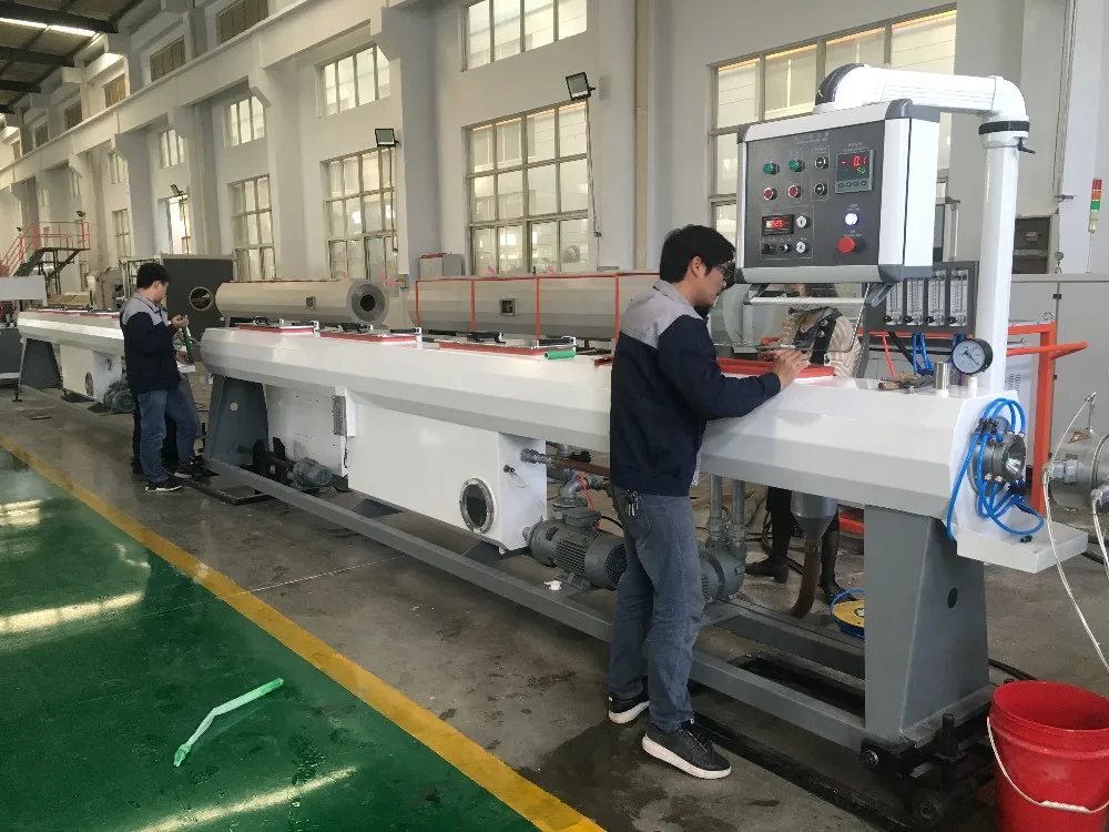PP-R Pipe machine is mainly used in the production of agricultural drainage, water supply and drainage, and cable laying,etc. purposes. The unit consists of single extruder machine, mold, vacuum forming tank, multi-claw haul-off machine, planetary(chipless/non-dust cutter) cutting machine, stacker and so on. And the line can be equipped with Comptroller thickening instrument or computer ink-jet printer, etc. to achieve the production and manufacture of high-grade tubing.
