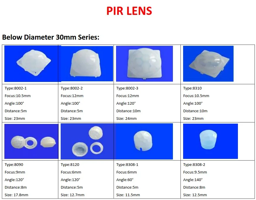 PIR Fresnel lens are widely used in body sensor switch, infrared alarm, infrared thermometers and infrared imaging. Micromu can provide users with various types angle sensor,sensing range,size, ratio test series fresnel lens.