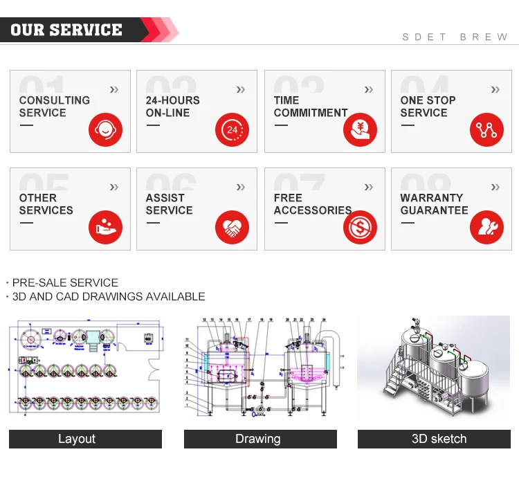 SDET is one of the most well-known beer brewery equipment supply companies in China which has 40 years brewing experience and more than 10 years manufacturing experience.Our company combines both the world’s most sophisticated brewing technology with economical prices in order to provide our customers with the best equipment at an affordable price. Our product line caters to every possible customer in the market: from pilot systems / home brewery equipment to microbrewery equipment / macrobrewery as well as renovating or upgrading current commercial beer brewing equipment. If you are unsure as to what products to select or where to start, we will help you find EXACTLY what you are looking for.