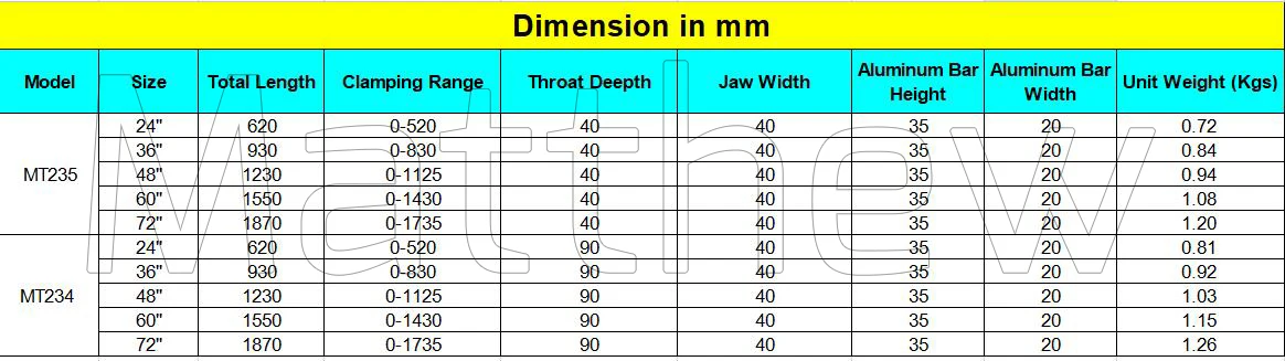 | Application: | Carpentry clamping tool; | Material: | Aluminium; |