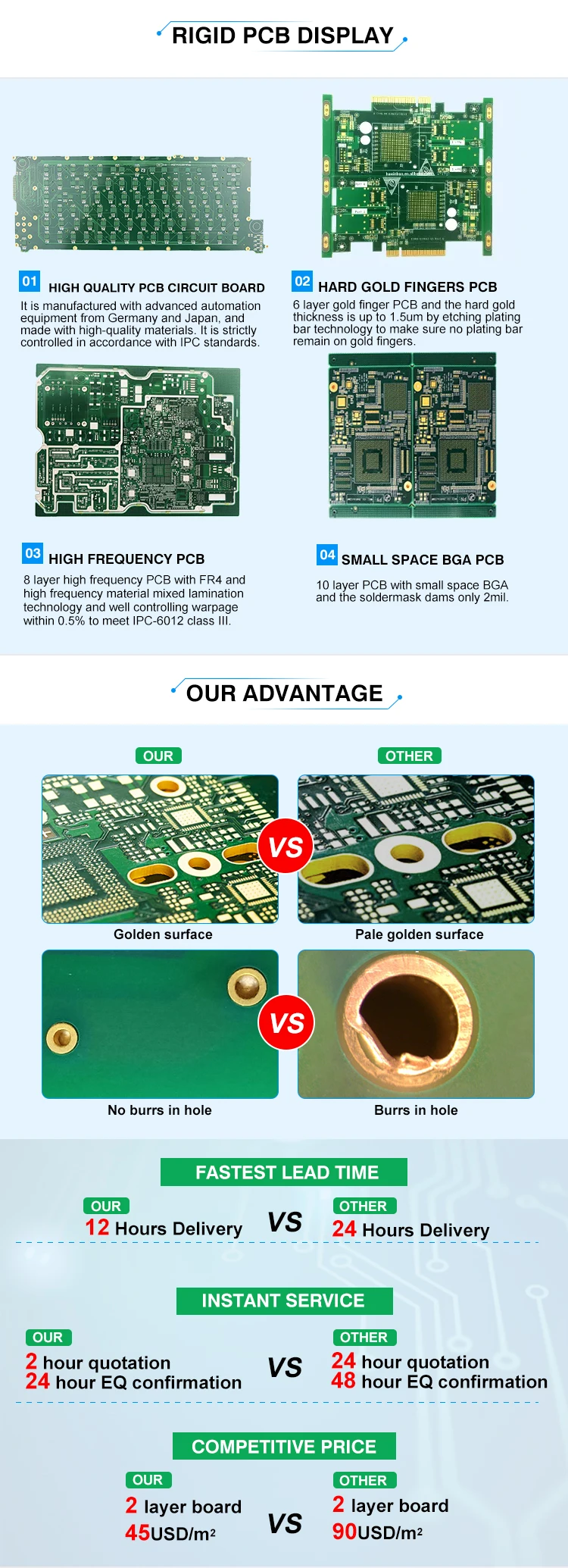 | Surface Treatment | ENIG,Gold Finger,Immersion Silver,Immersion Tin,HASL(LF),OSP,ENEPIG,Flash Gold;Hard gold plating | ENIG,Gold Finger,Immersion Silver,Immersion Tin,HASL(LF),OSP,ENEPIG,Flash Gold;Hard gold plating | ENIG,Gold Finger,Immersion Silver,Immersion Tin,HASL(LF),OSP,ENEPIG,Flash Gold;Hard gold plating |
