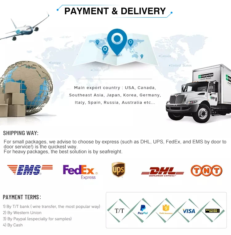-Wire Transfer(T/T),Western Union,Letter of Credit(L/C)