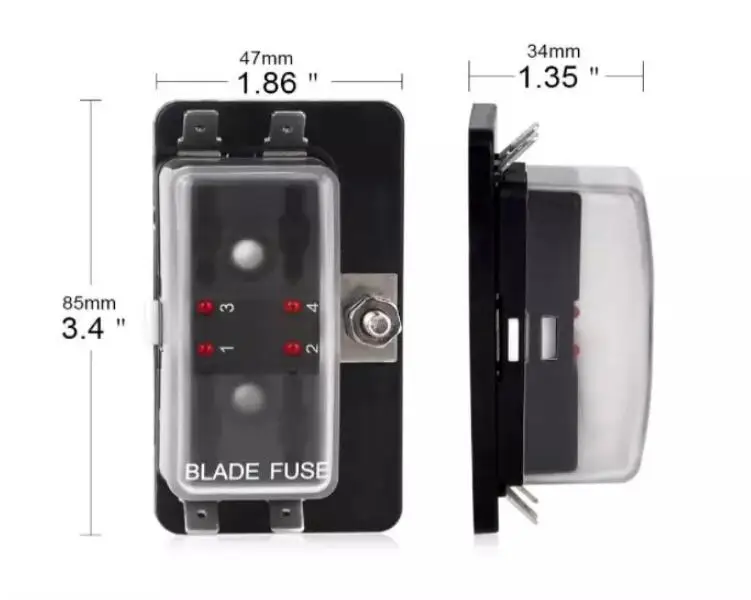 2. 4-Way Blade Fuse Block: Each fuse holder is numbered to make fuse installation and identification as easy as possible.