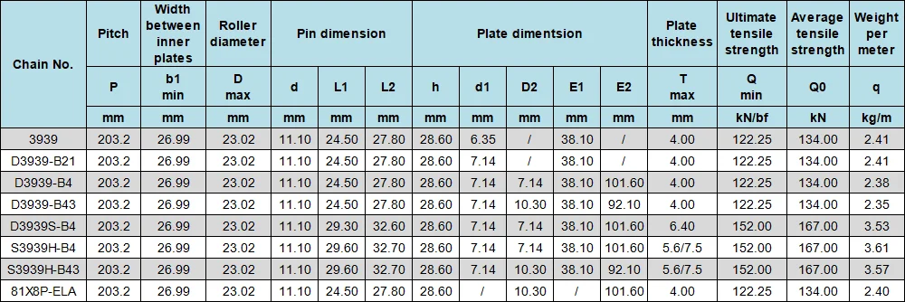 | Double Pitch Conveyor Chain | C208A C208AH C208B C208BL C210A C210AL C212A C212AH C212AHL C216A C216AL C216AH C216AHL C220A C220AL C220AH C220AHL C224A C224AL C224AH C224AHL C232A C232AL C232AH C232AHL | |