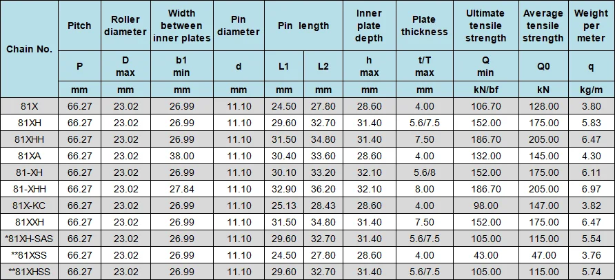 | Lumber conveyor chains | 81X 81XH 81XHE 81XHH 81XHS 500R 441.100R | |