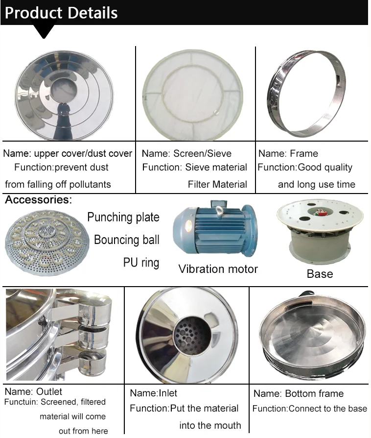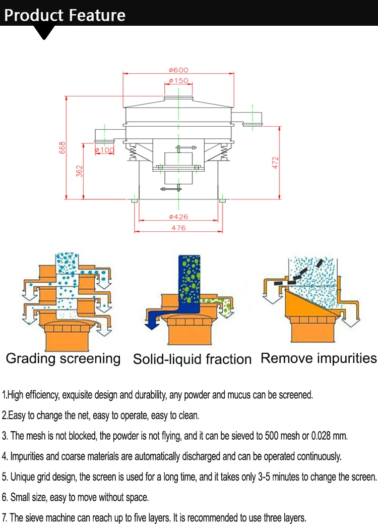 | Product name: | Spin vibrating sieve; | After-sales Service Provided: | Free spare parts,Online support,Video technical support,Field installation, commissioning and training,Field maintenance and repair service; |