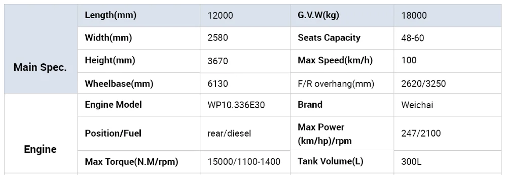 | Engine: | WP10.336E30; | Overall dimensions: | 12000x2580x3670; |