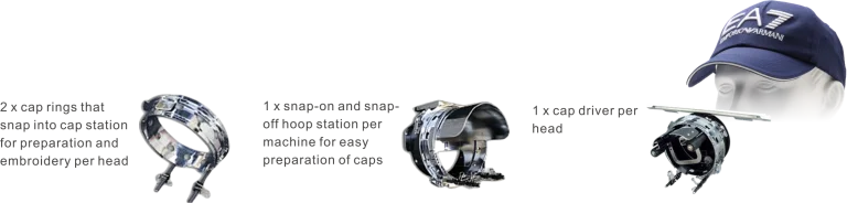 Newly developed small sewing arm guarantees better embroidery quality on caps and small items.