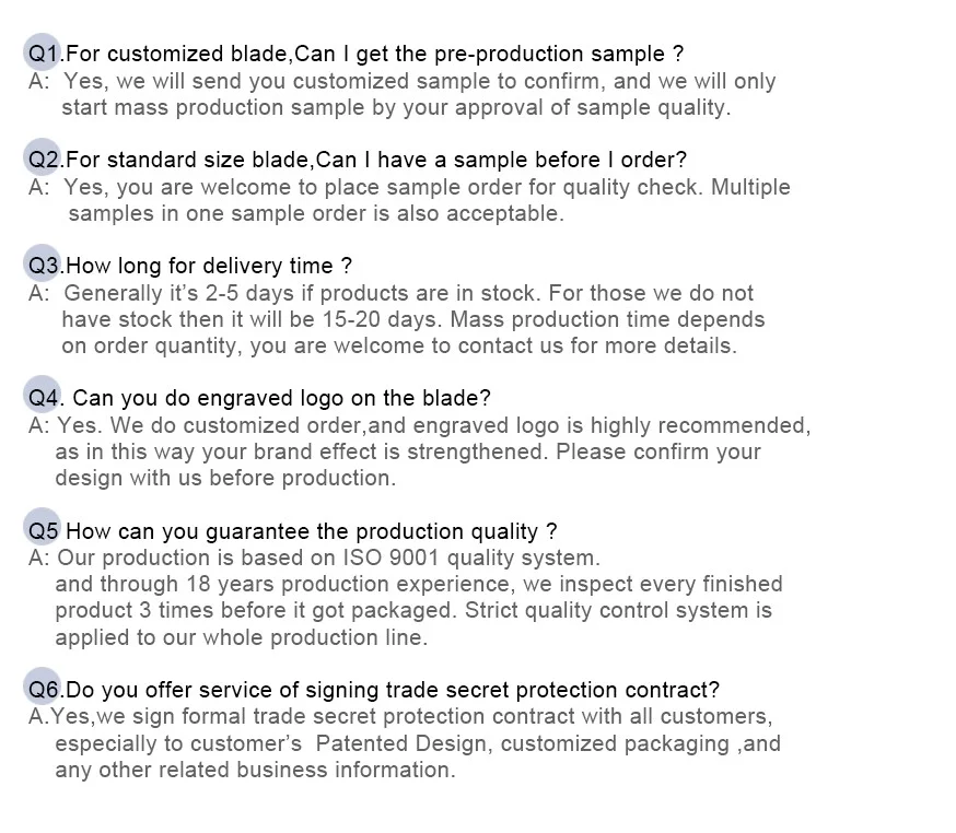 3. Our service: Technical solutions, fast response for the products inquiry, assist clients' requirements on the after sale service offered.