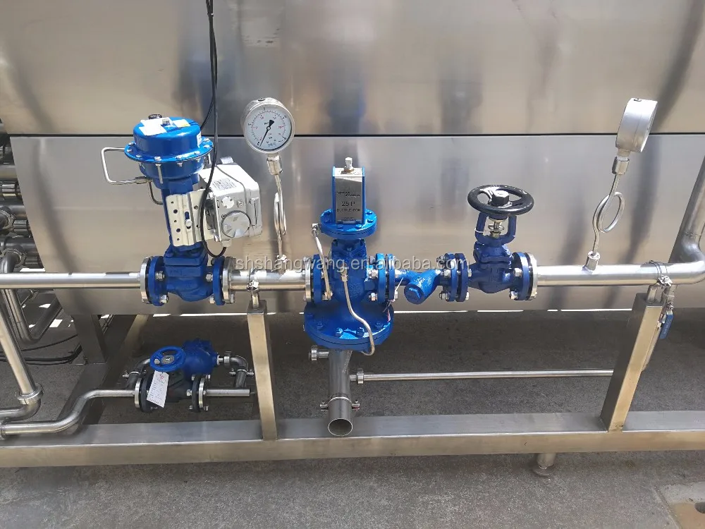 Steam Control System is an inportant part of Pasterurizer, It contains steam rate adjustable valve, plunger valve, steam pressure reducing valve, steam trap and steam filter. A good steam control system can guarantee the machine working stable. All of the steam valves are come from Spirax Sarco (England).