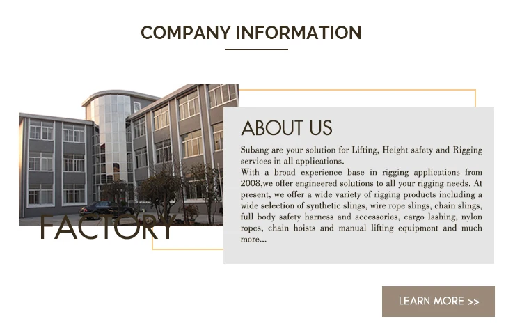 | Selling Units: | Single item; | Safety factor: | 5:1 6:1 7:1 8:1 is available; |