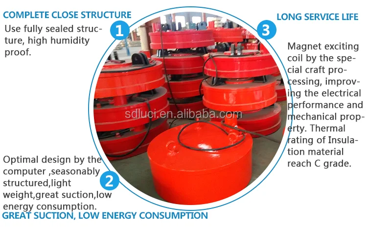 | Cold-state Power: | 3.3KW-33.9KW; | Package Type: | Wooden Box for hot sale electric crane metal handle lifting magnet for lifting iron metal scrap; |