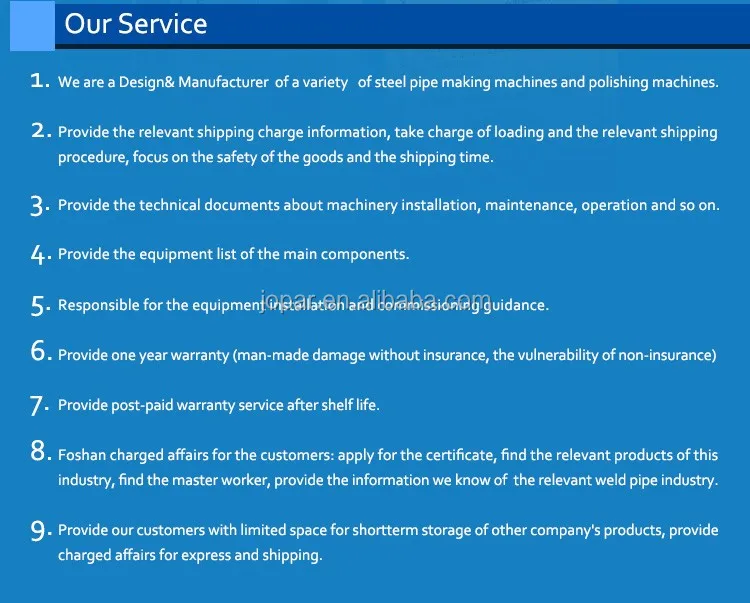 Serivices: stainless steel pipe making machine, ss tube mill, ss pipe mill, erw tube mill, carbon steel tube mill, high frequency tube mill, pipe/tube polishing machine,