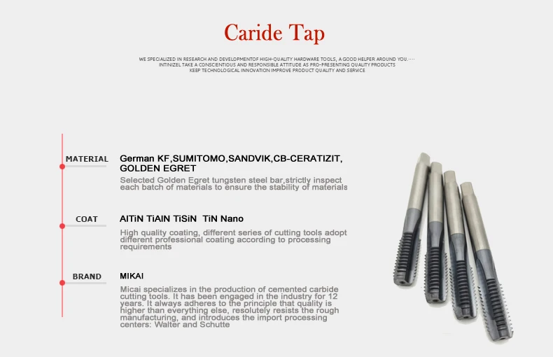 | Product Name: | China Manufacturers Machine Taps Solid Carbide Thread Tap For Steel; | Selling Units: | Single item; |