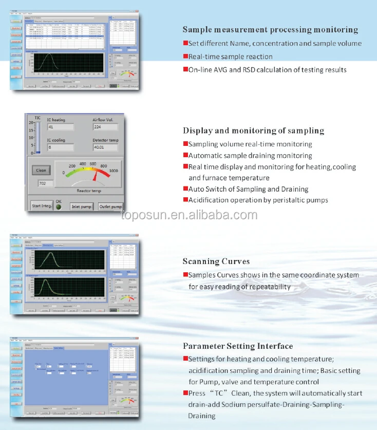| Brand Name: | Toposun; | Supply Ability: | 50 Unit/Units per Month TOC-3000 total organic carbon TOC analyzer for TC TIC TOC NPOC; |
