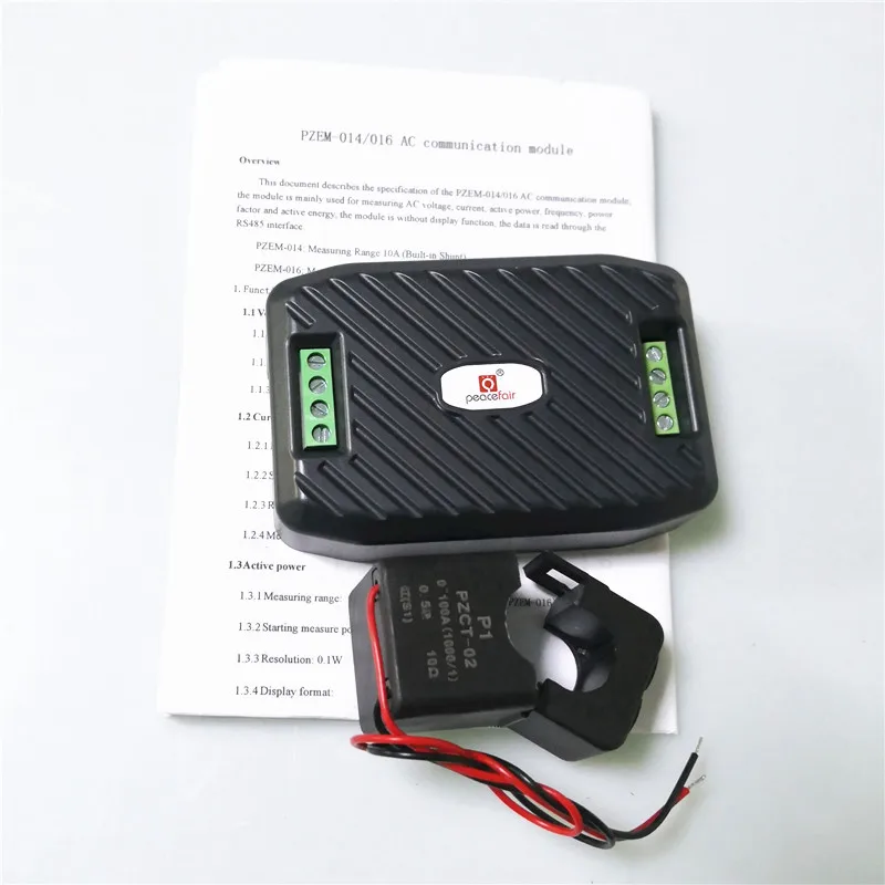 This document describes the specification of the PZEM-014/016 AC communication module, the module is mainly used for measuring AC voltage, current, active power, frequency, power factor and active energy, the module is without display function, the data is read through the RS485 interface