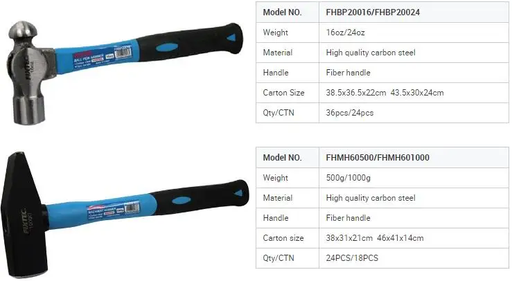 | Hammer Material: | Steel; | Handle material: | Fiber glass handle; |