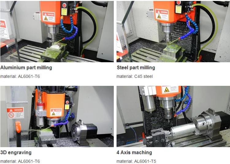SVM-2VMC can handle all materials from Plastic, Aluminium, Brass, Steel, Stainless Steel to Taitanium. It's a real industrial level CNC machine to do precision machining works. Typical machining tolerance is <0.01mm.