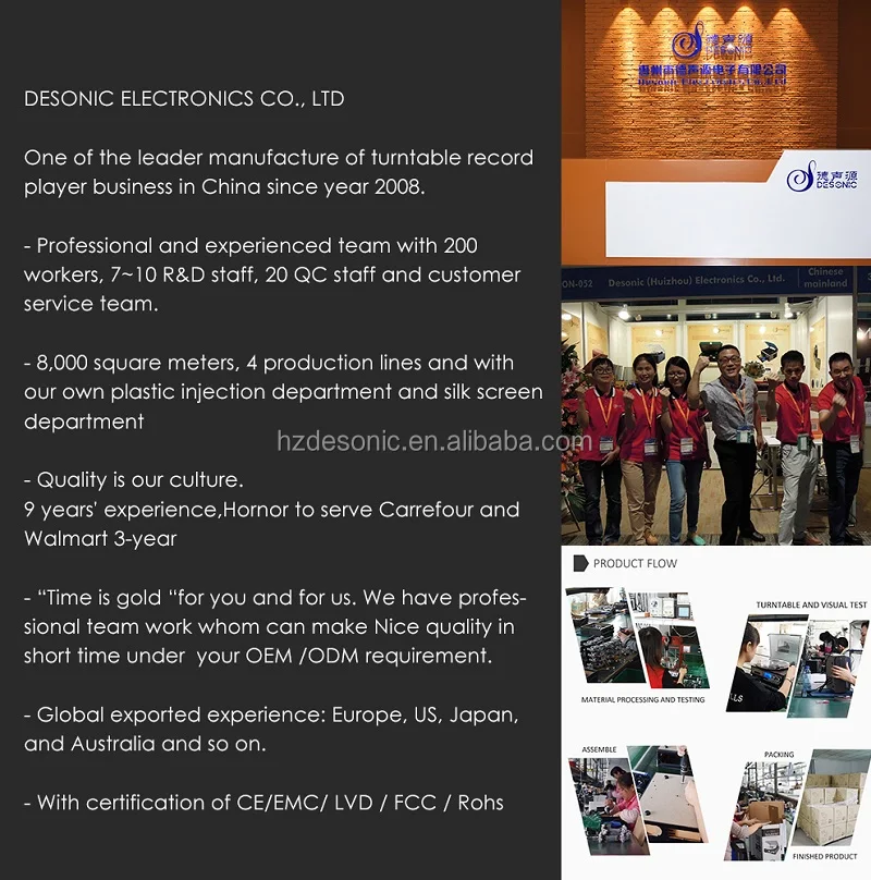 | Turntable player: | 3 speeds 33/45/78RPM,7", 10",&12"Records; | Payment Terms: | L/C,T/T,Western Union,MoneyGram; |