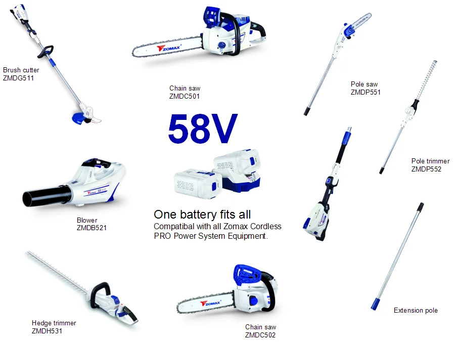 a) Compatible with all ZOMAX 58V lithium-ion tools and batteries