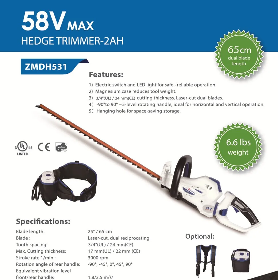 We'd like to introduce you a light-weight but efficient 58V cordless hedge trimmer.