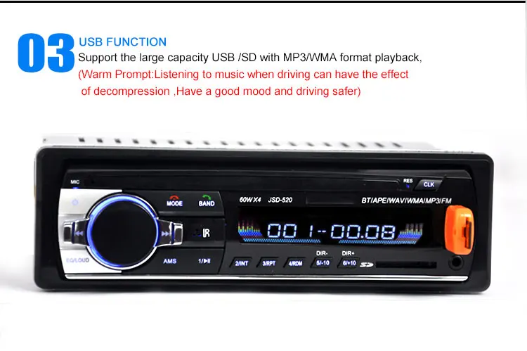| Panel: | Fixed panel 1din; | Supporst Card: | Yes; |