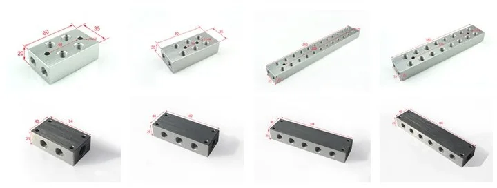 | Item: | 74x40x25mm Two Way Six Stations Brushed Aluminum Manifold; | Material: | Alloy; |