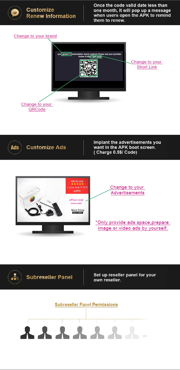 Yes. We can offer reseller panel once the order over 10 pieces.With reseller panel, it is easy to manage your customers and open a test code to your customers to check on the channels.
