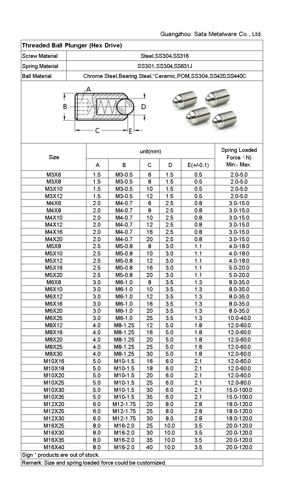 Product Name | OEM Customized Spring Loaded Ball/Pin Plunger |