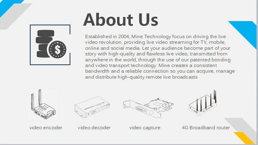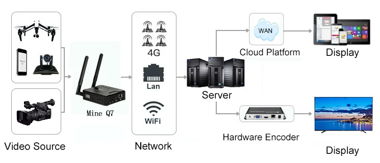 Mine Tech offers the smart telecaster range of solutions that include H264/H265 HEVC video transmission unit for streaming live video for outside broadcast, such as for live new gathering and live sports contribution. Mine-Q7 is a device that can be mounted on camcoders or cameras and can encode and stream over standard 3G, 4G LTE and Wi-Fi solution, with a very low latency.