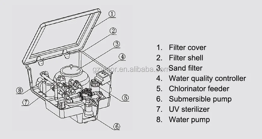 The enclosure of swimming pool machine house is made of high quality Acrylic and fiberglass, so the swimming pool water system is anti-acid,anti-acid, and easy to clean. Integrated filter is invisible machine room, so installation without room, simple installation, convenient operation, excellent performance, there by reducing the construction cost. The fittings is made according to Countries codes and standards. It is save the place fo rswimming pool.