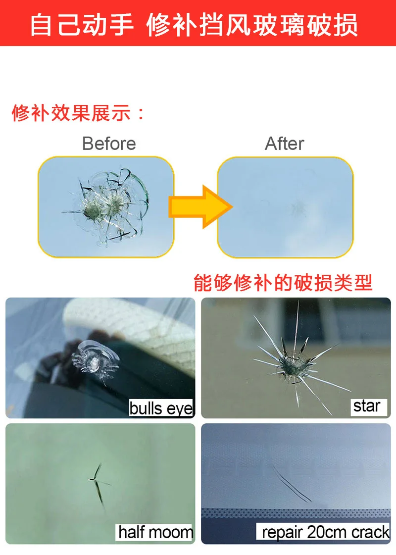 Professionals premium repair kit helps you save many costs and time to buy a piece of new glass.