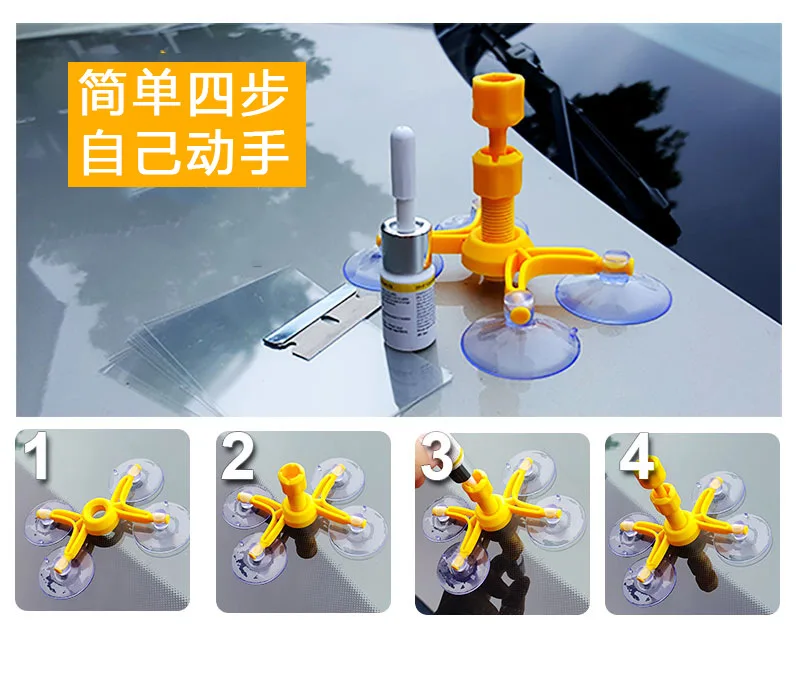DIY Car Wind Glass Windscreen Windshield Repair Tool Kit Yellow For Chip Crack