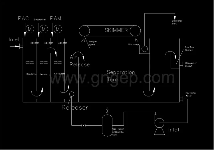 4. Custom design on different dissolved air flotation equipment and recycle flow ratio according to