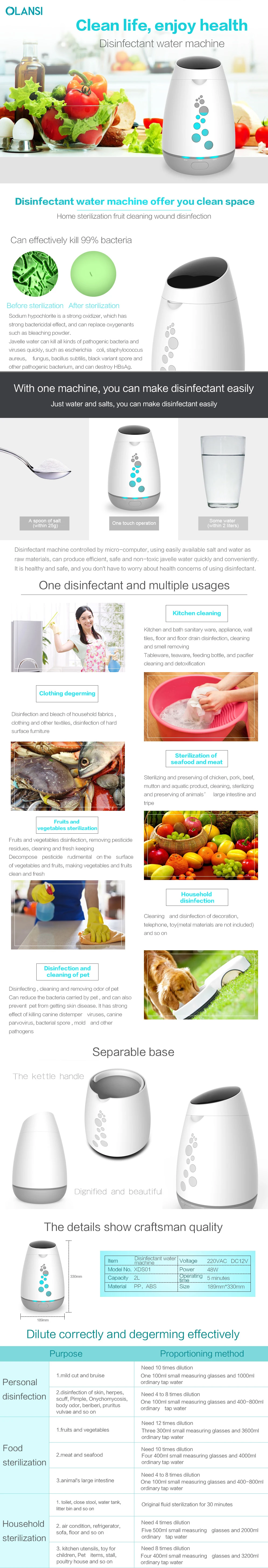 Usages | Kitchen cleaning, Clothing Degerming, Sterilization of seafood and meat, Fruits and vegetables sterilization, Household disinfection, Disinfection and cleaning of pet. | ||
