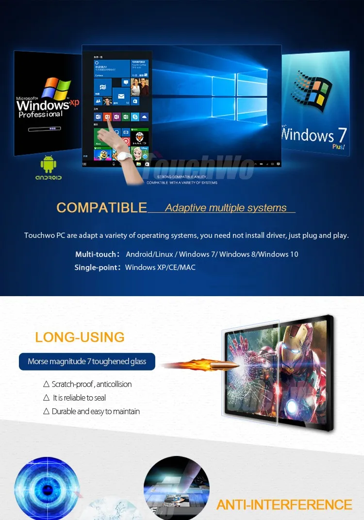 Touchwo-- A professional hi-tech enterprise of touch products R & D and prouction,with its years of accumulated advantage of software and hardware development, industrial design, cost control, systems integration, has launched capacitive touch all in one pc, touch monitors, industrial Panel PC, infrared touch all in one pc, kiosk, interactive tables, advertising and interactive software and other products.