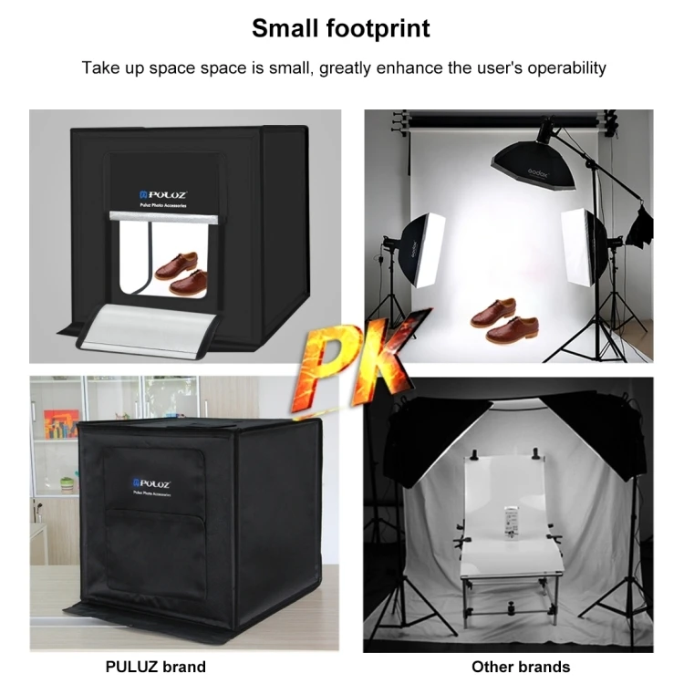 5. Practical and portable: Mini studio is portable because of the fold-storage design, the size is 60x60x60cm, great for taking picture for small objects such as toys, jewelry, watches, headphones, pens, dishes, cookies, etc, it's also an awesome gift for photographers, bloggers and artisans who want to present their works.