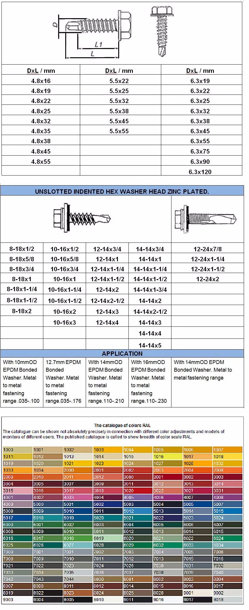 | Supply Ability: | 1000000 Unit/Units per Month Order QTY Negotiable; | Packaging Detail: | Packing for Hex Roofing Screw Sheet to Timber Roofing Material and Roofing Bolt : 1. Industrial packaging: plastic bag + craft paper + carton or wooden ; plastic tube + carton. 2. Commercial packing: 1pc/plastic bag + color box + carton. 3. As the clients' requirement.; |