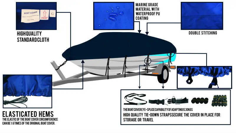 Our fabric is Waterproof, UV protected andmildew proof which keeps your boat form rain and sun.