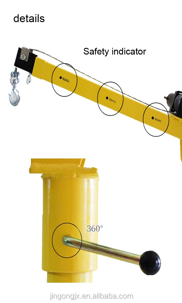 2. Crane jib height: adjustable minimum 1.1 meters, maximum 1.95 meters