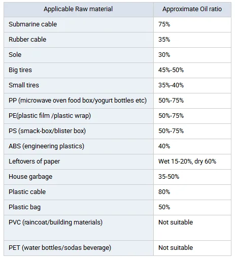 2. Your raw material can be PP PE PS ABS ,oily sludge , rubber , scrap tires products etc.