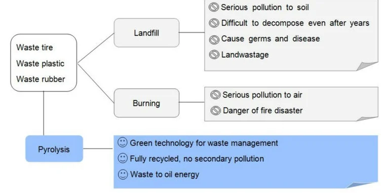 Advanced Pyrolysis Plant Converting Plastic Waste to Fuel Oil's oil recycling technology is widely recognized as one of the most economical and environmentally friendly methods. That’s because we can get some tire oil, steel wire and carbon black by using pyrolysis equipment.