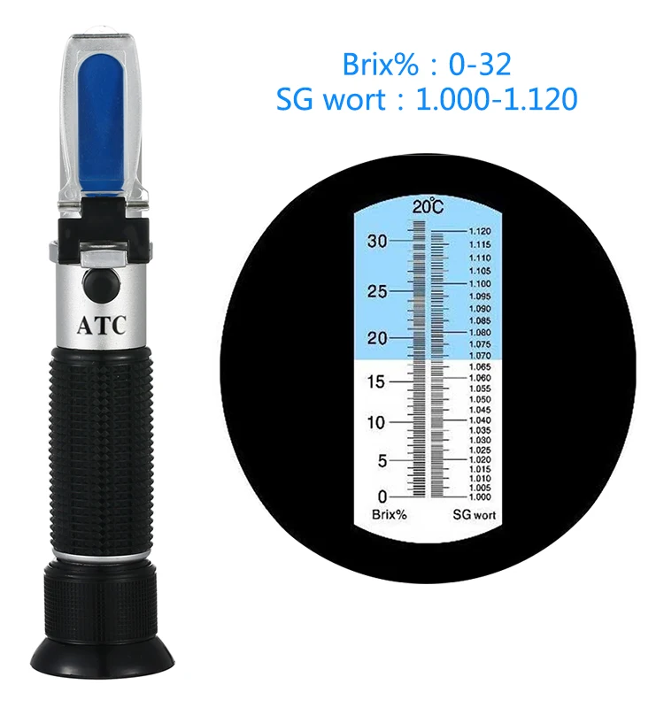 RSG-32ATC hand held SG 1.000-1 .120 Beer Refractometer 0-32% Brix Reference Temperature 20C Dual Scale with Plastic Retail Box