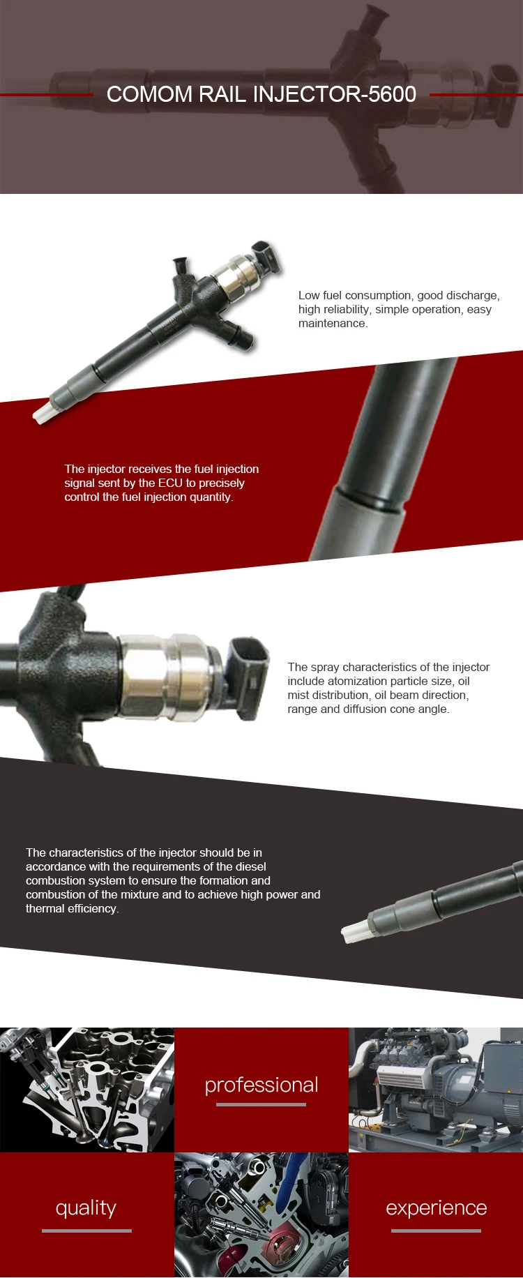 | Application: | Common rail fuel system; | Model Number: | 095000-5600 Injector; |