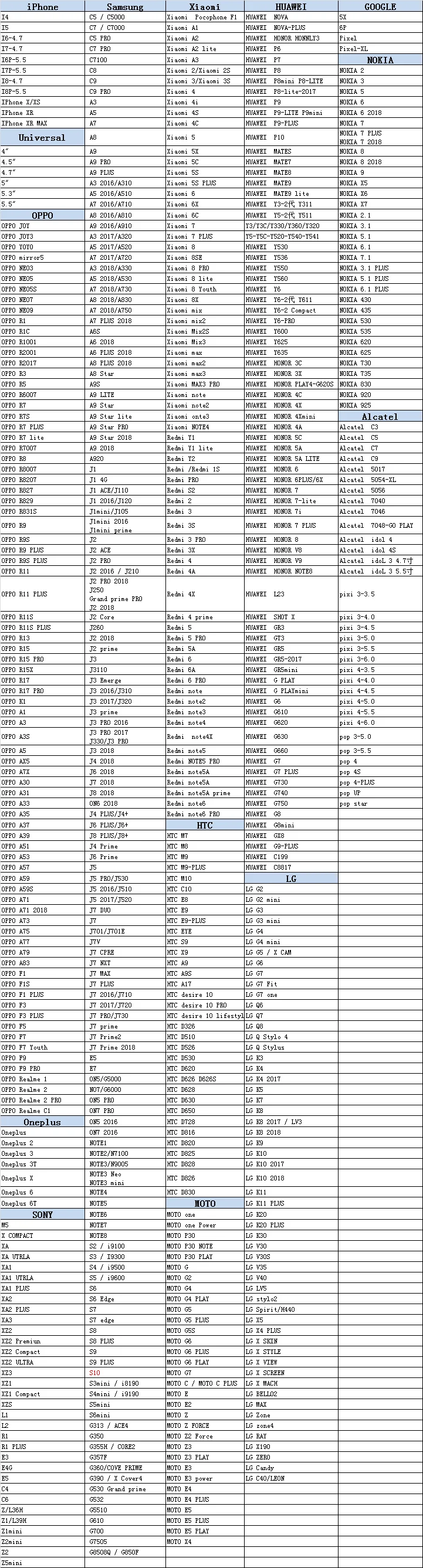 | Universal | Samsung | Xiaomi | HUAWEI | |